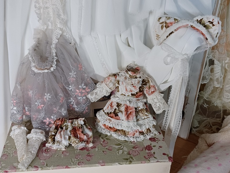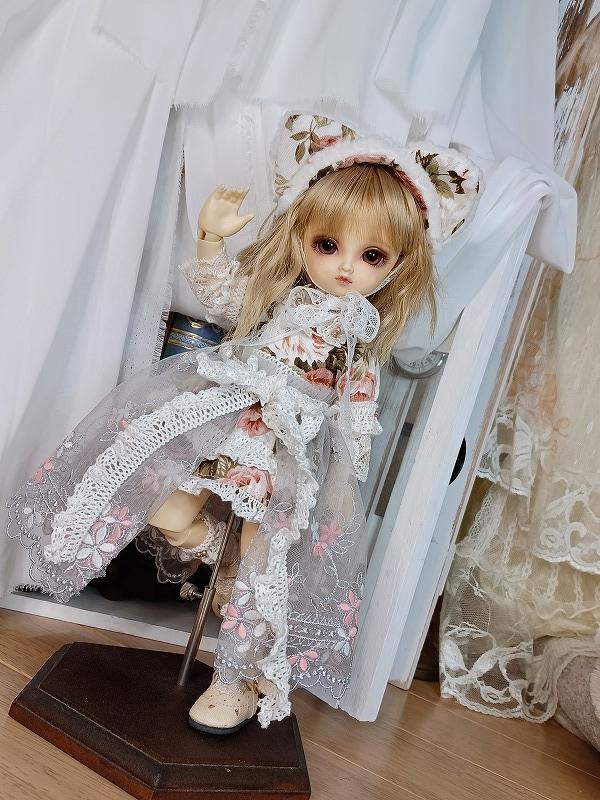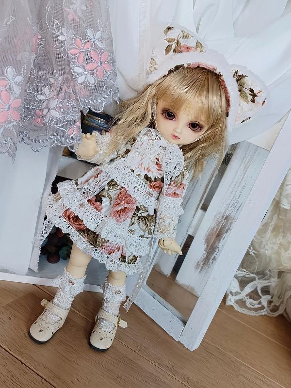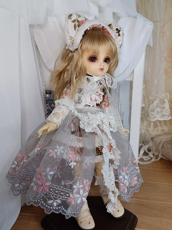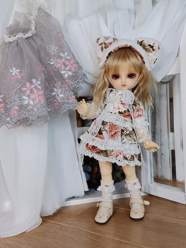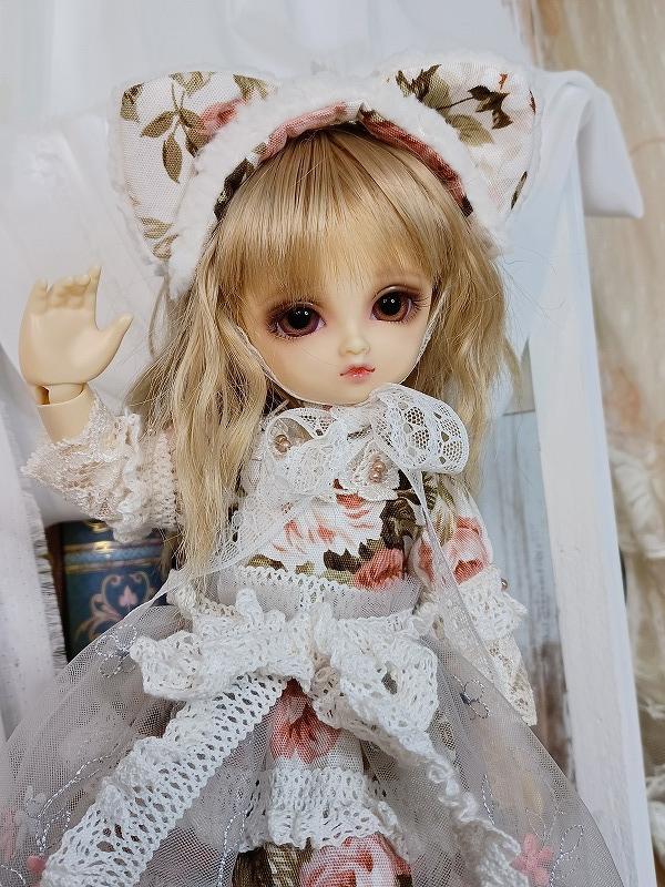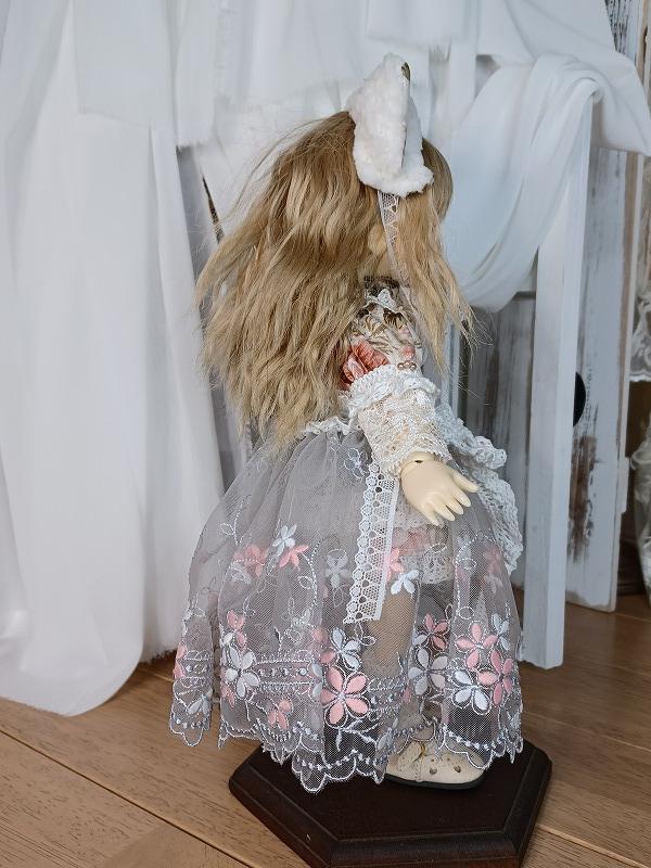 素敵な色合いの生地を使用したお洋服です。 ワンピースはミニ丈の元気で可愛らしいデザイン。 オーバースカートがついているので着用すると一気に雰囲気が変わります。 ドロワーズがついているので元気に動かしても安心(*'▽') ヘッドドレスには猫耳ちゃんをつけています。 元気で可愛い猫ちゃんをお楽しみ下さい。 ☆.。.:*・゚☆.。.:*・゚☆.。.:*・゚☆ ★ワンピース<スナップ式> ★ドロワーズ ★猫耳ヘッドドレス<レース留め> ★オーバーレース ★レッグレース ☆.。.:*・゚☆.。.:*・゚☆.。.:*・゚☆ |